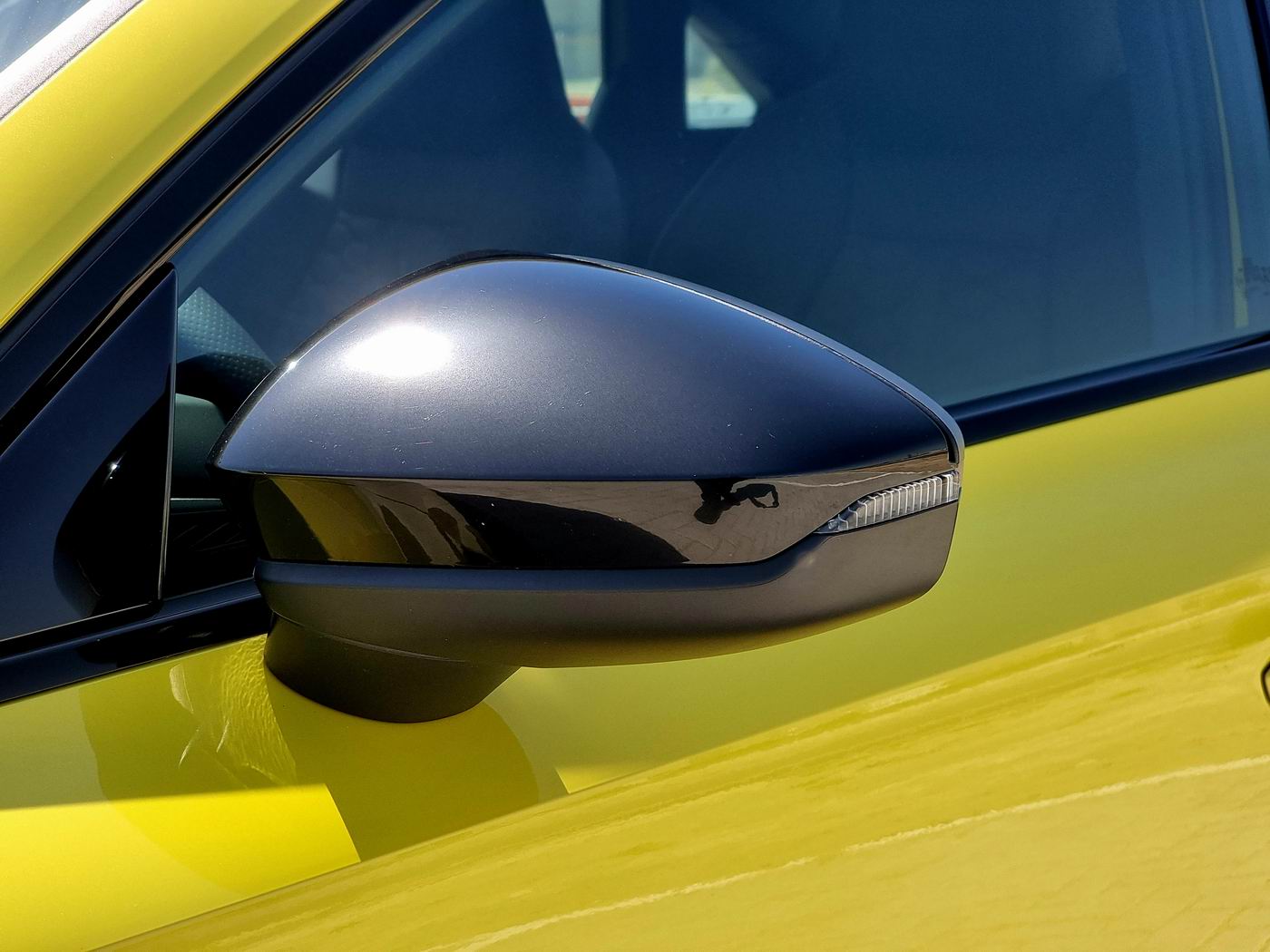 The design packages in red and green add touches of color to the seat belts, seat shoulders, and air vents. Additionally, the contrast stitching on the seats, center armrest, door armrests, steering wheel, and the 12 o’clock marker is done in the respective color. The same goes for the floor mats in black velour, which are also adorned by RS lettering.