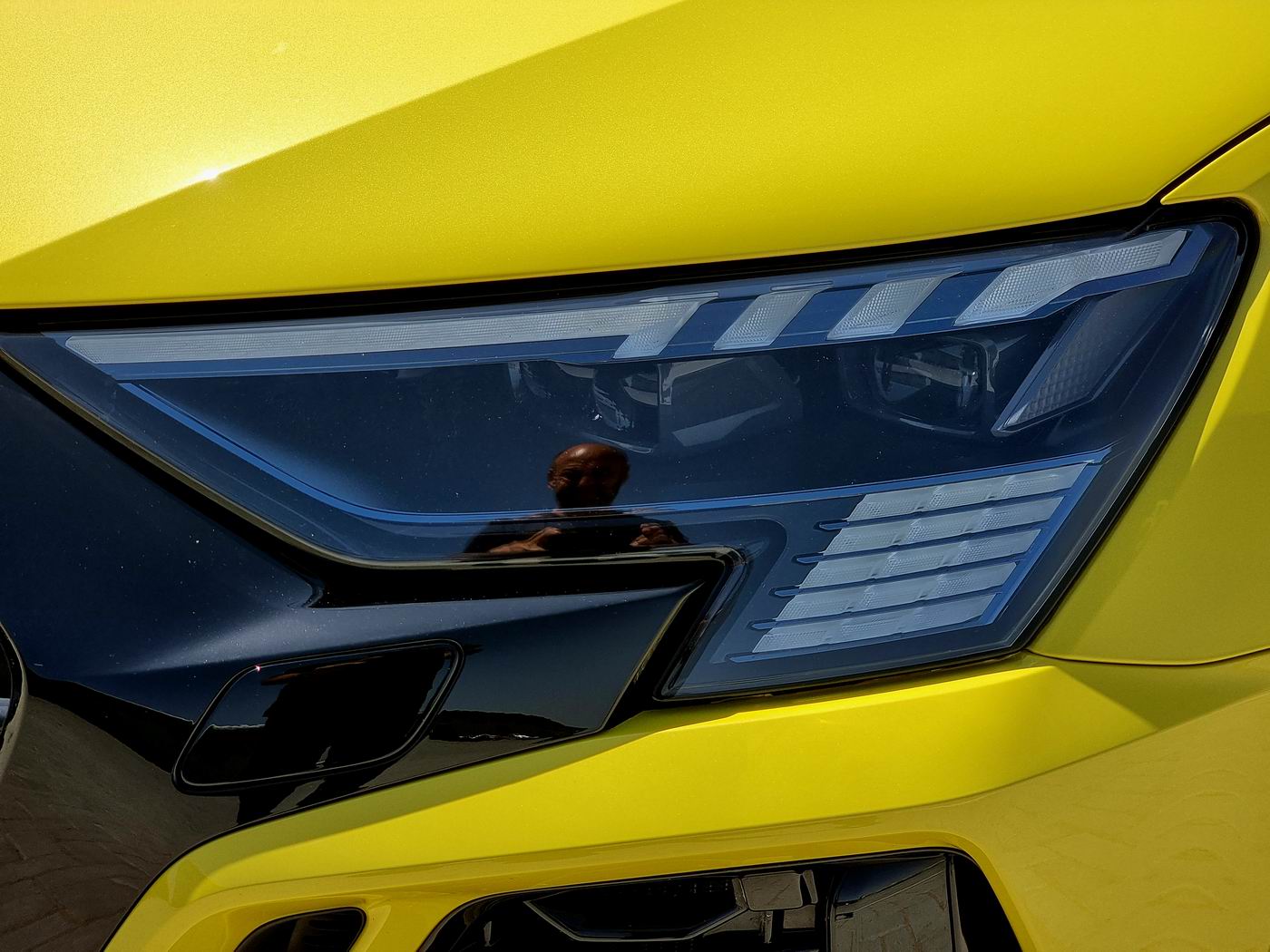 After its product upgrade, the Audi RS 3 has a significantly sportier appearance. The dominant feature of the assertive front design is the hexagonal Singleframe with a striking border. Flatter and considerably broader than before, it emphasizes the dynamics of the compact sports car with its voluminous rhombus-pattern grille. The same goes for the two functional side air intakes – accentuated by vertical black blades – and the three apertures above the front splitter, which now spans the entire vehicle breadth and lets the RS 3 sit even lower – reminiscent of the Audi Sport quattro S1 Pikes Peak from 1987.