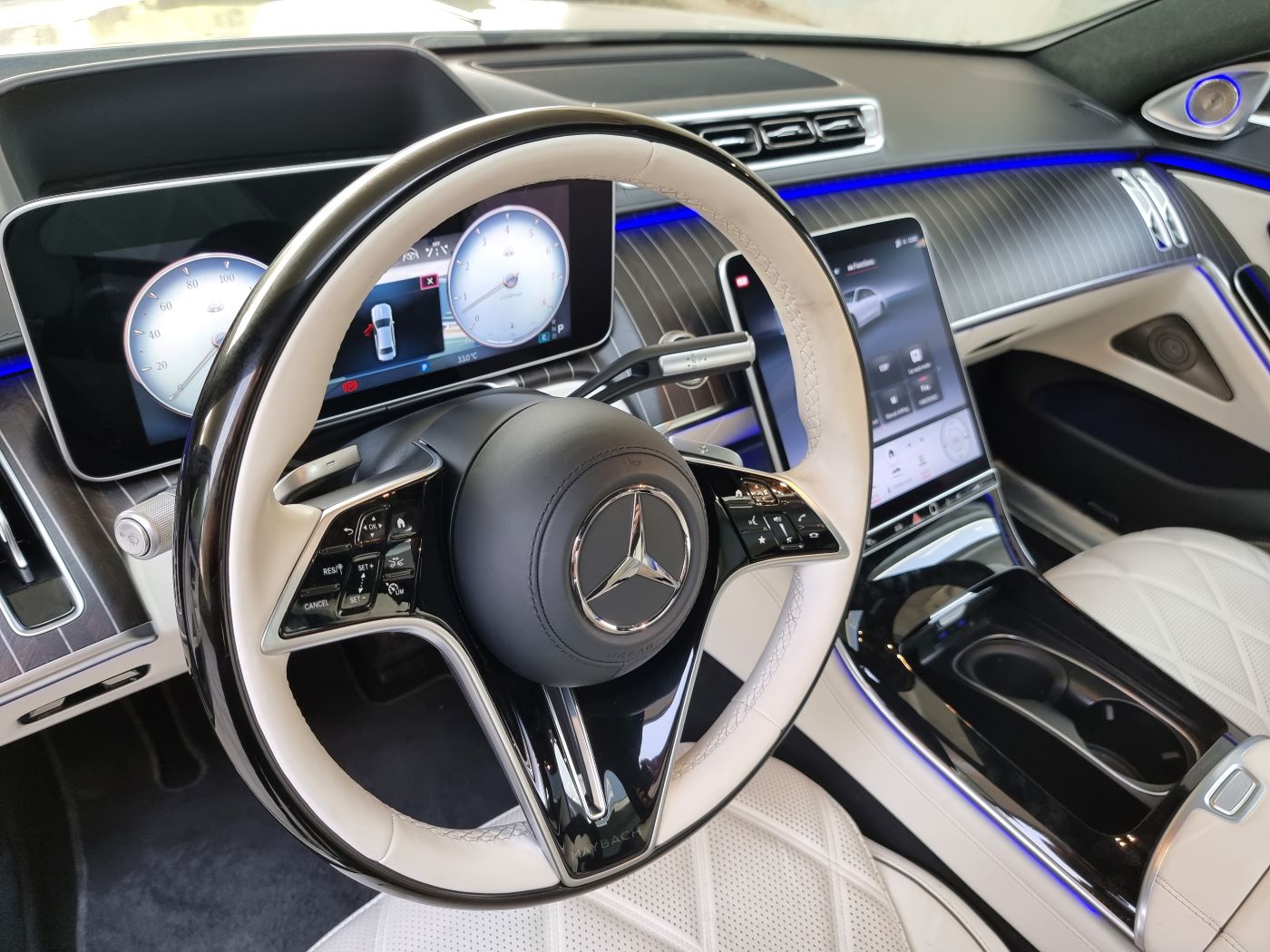 The S680 is powered by a 4.0-liter twin-turbocharged V8 engine paired with a mild-hybrid EQ Boost system. It produces approximately 612 hp and 900 Nm of torque, delivered through a refined 9-speed automatic transmission. The powertrain provides smooth acceleration and relaxed cruising, supporting the sedan’s focus on comfort rather than sporty performance. Suspension systems are adaptive, designed to balance ride comfort with stability and control.