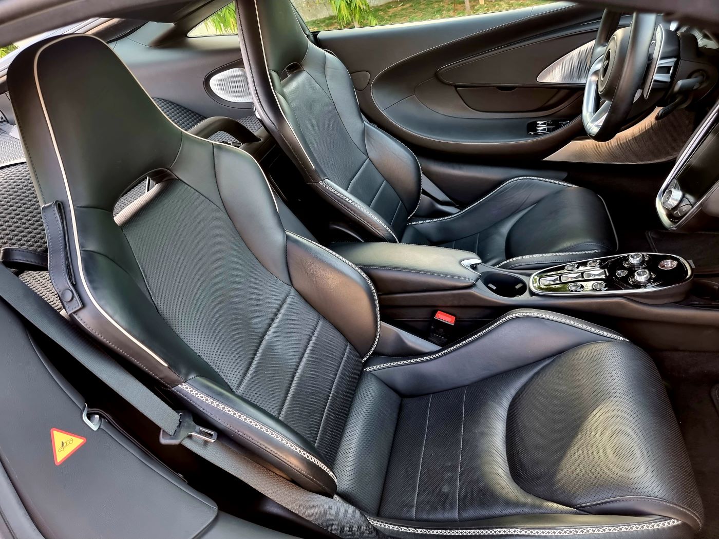 What truly separates the McLaren GT from other mid-engine supercars is its practicality. The car offers an impressive 570 litres of total luggage space, with 420 litres available in the rear compartment under the large, glazed tailgate, and an additional 150 litres in the front trunk. This makes the GT uniquely usable for road trips or everyday life, which is rarely the case for vehicles in its class. Ground clearance is also improved over other McLaren models, and a front-end lift system is available to help clear speed bumps or steep driveways, further enhancing real-world usability.